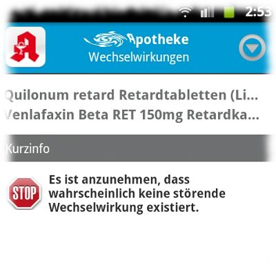 Pillen vorbestellen und so (leider aber ist unsere Stammapotheke nicht dabei) und vieles mehr, und außerdem sucht es einem Beipackzettel und Wechselwirkungen.
