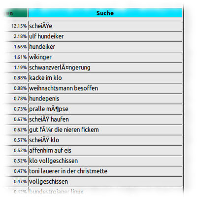 Üblicherweise blogge ich ja nicht über Suchbegriffe, mit denen ich gefunden werde. Doch immer wieder irritiert mich, wonach die Leute suchen. Dass sie mich damit finden zwar nicht (anders als Phantadu, zu Recht, denn sie bloggt sicherlich weniger unanständig), aber wer ist so krank, den Scheiß zu suchen, den